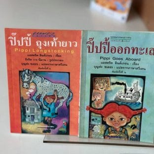 หลายคนอาจจะผ่านตาหรืออ่าน ‘ปิ๊ปปี้ ถุงเท้ายาว’ ฉบับ chapter book กันมาบ้างแล้ว เพราะก่อนที่กทป. จะนำปิ๊ปปี้ ถุงเท้ายาวฉบับหนังสือภาพมาแปลและตีพิมพ์ สำนักพิมพ์เรจีนา และต่อมาโดยสำนักพิมพ์แพรวได้แปลและจัดพิมพ์หนังสือปิ๊ปปี้ ถุงเท้ายาว ฉบับ chapter book มาแล้วหลายปี