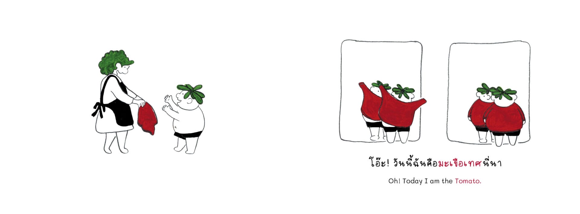 ฉันชอบมะเขือเทศที่สุดในโลก หนังสือภาพสองภาษา – ภาษาไทยและภาษาอังกฤษ ถ่ายทอดเรื่องราวด้วยข้อความสั้นๆ และภาพประกอบแสนขี้เล่นเต็มไปด้วยอารมณ์ขัน