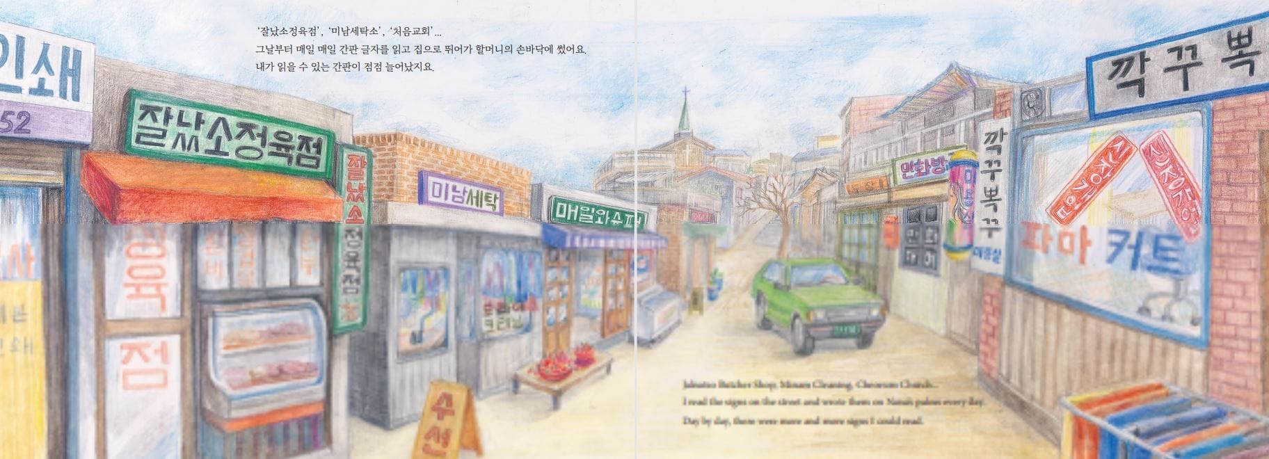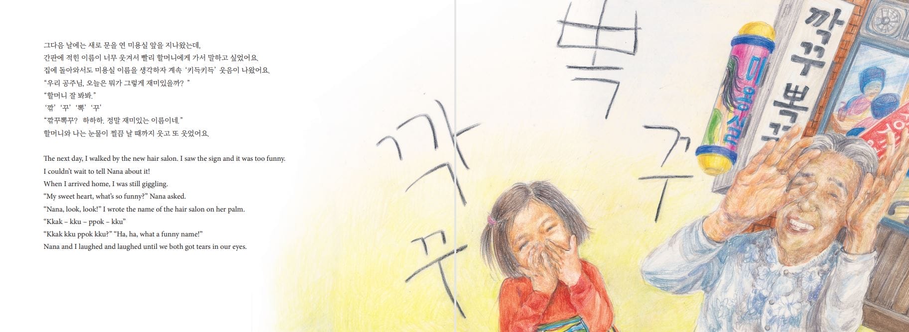Kkamnangun is based on the author’s childhood memory of learning the Korean alphabet from her blind grandmother.