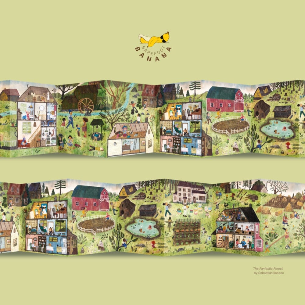 The Fantastic Forest is a large concertina board book that invites readers on an immersive journey into a magical world. Unfolding to an impressive almost three and a half meters, this wordless book encourages readers to lie down and explore its beautiful details.
