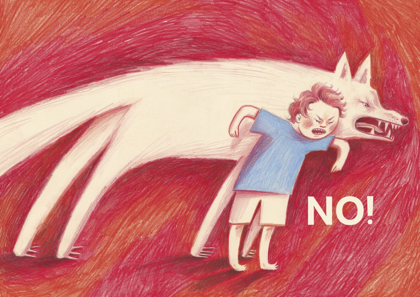 In the playground when another child pushes him, Wesley has be nice. In the pool when he’s scared of the water, he has to be brave. At a birthday party when he really wants to stay home, he has to be cheerful. But the wolf inside Wesley is growling louder and louder. What would happen if Wesley was more like Wolf? What would happen if Wesley said, ‘no’?