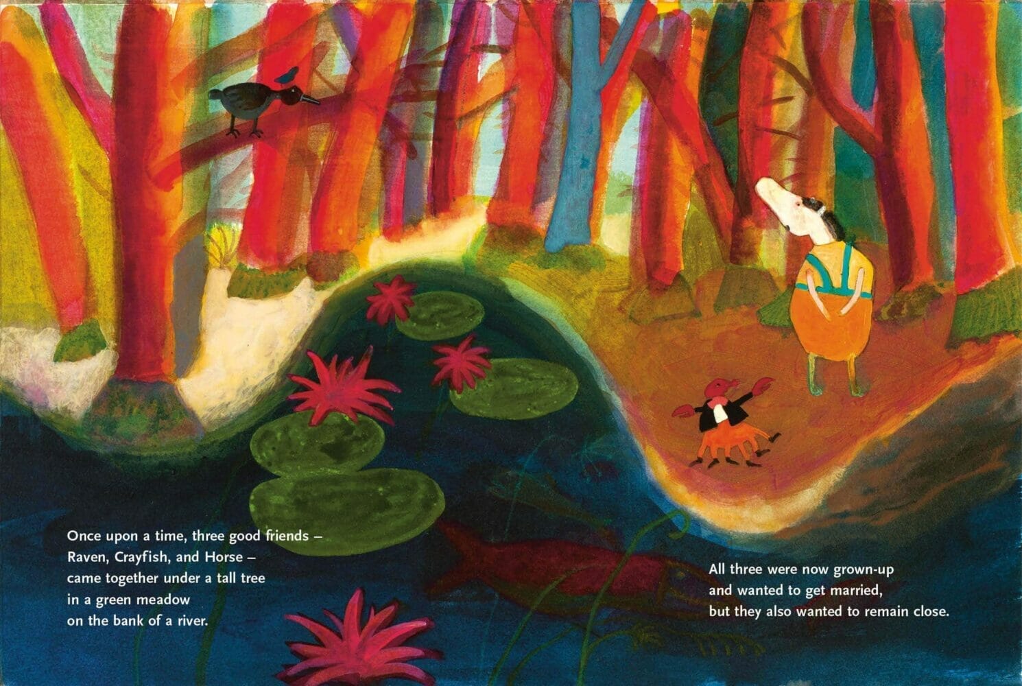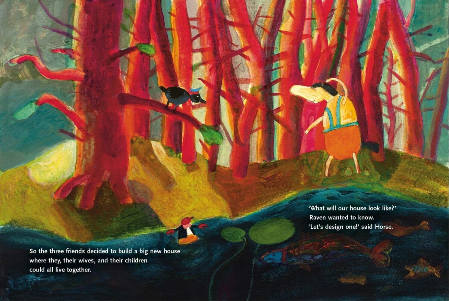 Raven, Crayfish and Horse have always been best friends. They’re grown up now and would like to start a family. They want all their families to live together and start planning to build a house. But what should that house look like? Will they find a solution that works for all of them?